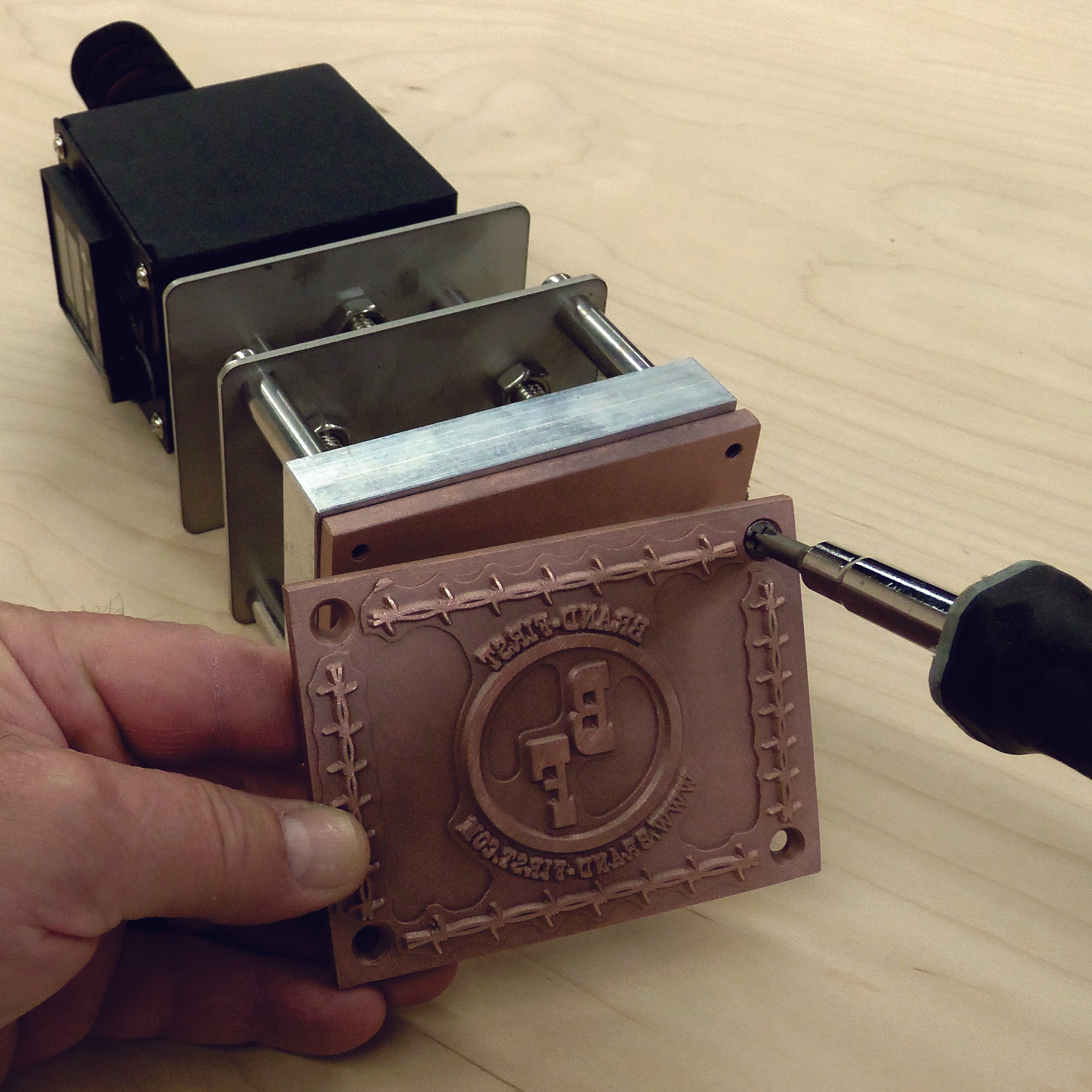 BRAND-FIRST can replicate any logo, signature, or font with unmatched accuracy. Need more than one logo design? You can purchase additional logo plates anytime. All logo plates screw on and off with 4 Phillips head screws.