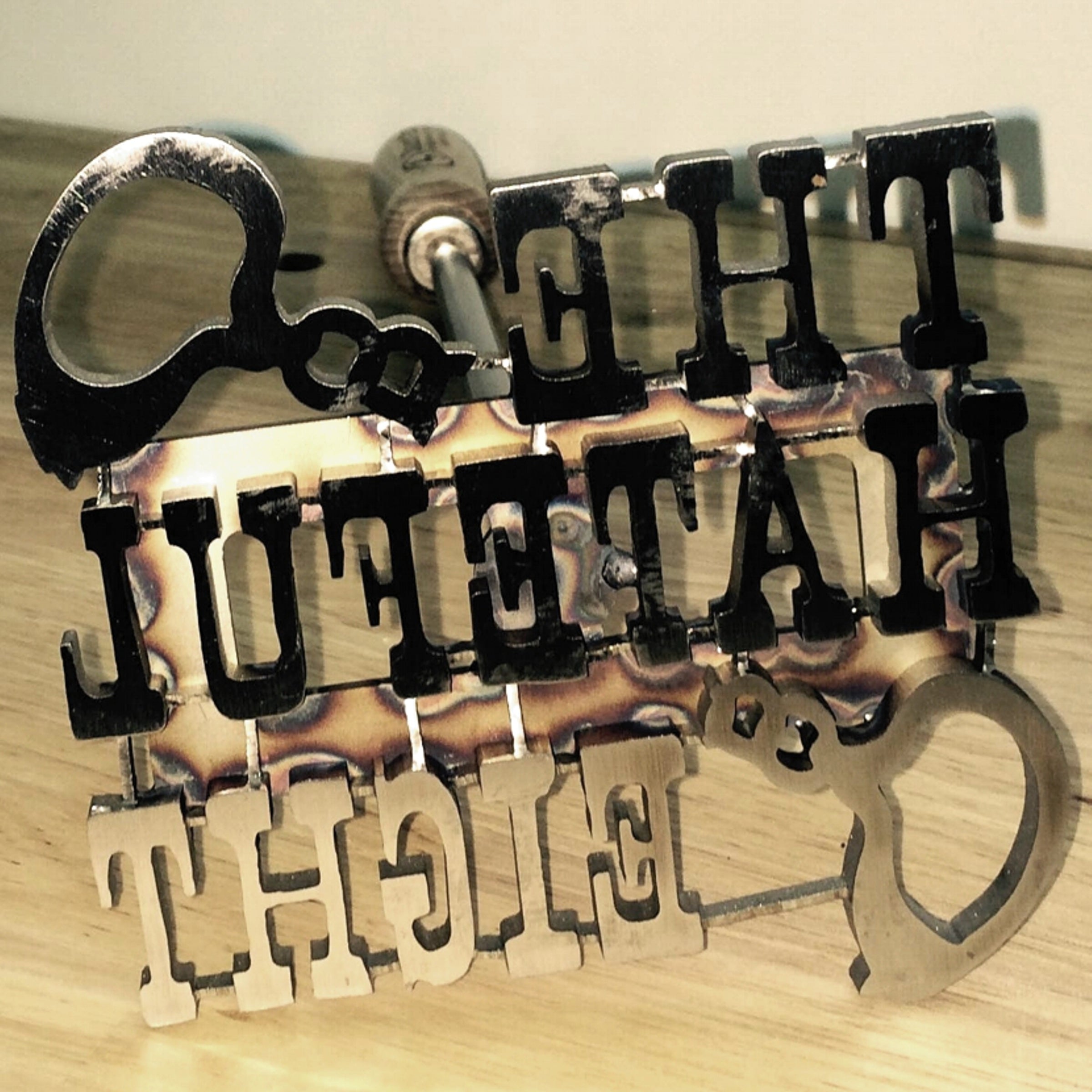 The branding iron face is cut from durable ¼” or 3/8” thick stainless steel. Depending on the branding iron head size, it will have a 3/8” stainless steel shaft welded to its head with a 4” hardwood handle, or larger heads will have a 1/2” stainless steel shaft welded to its head and bent to a “D” handle end similar to a traditional cattle brand.