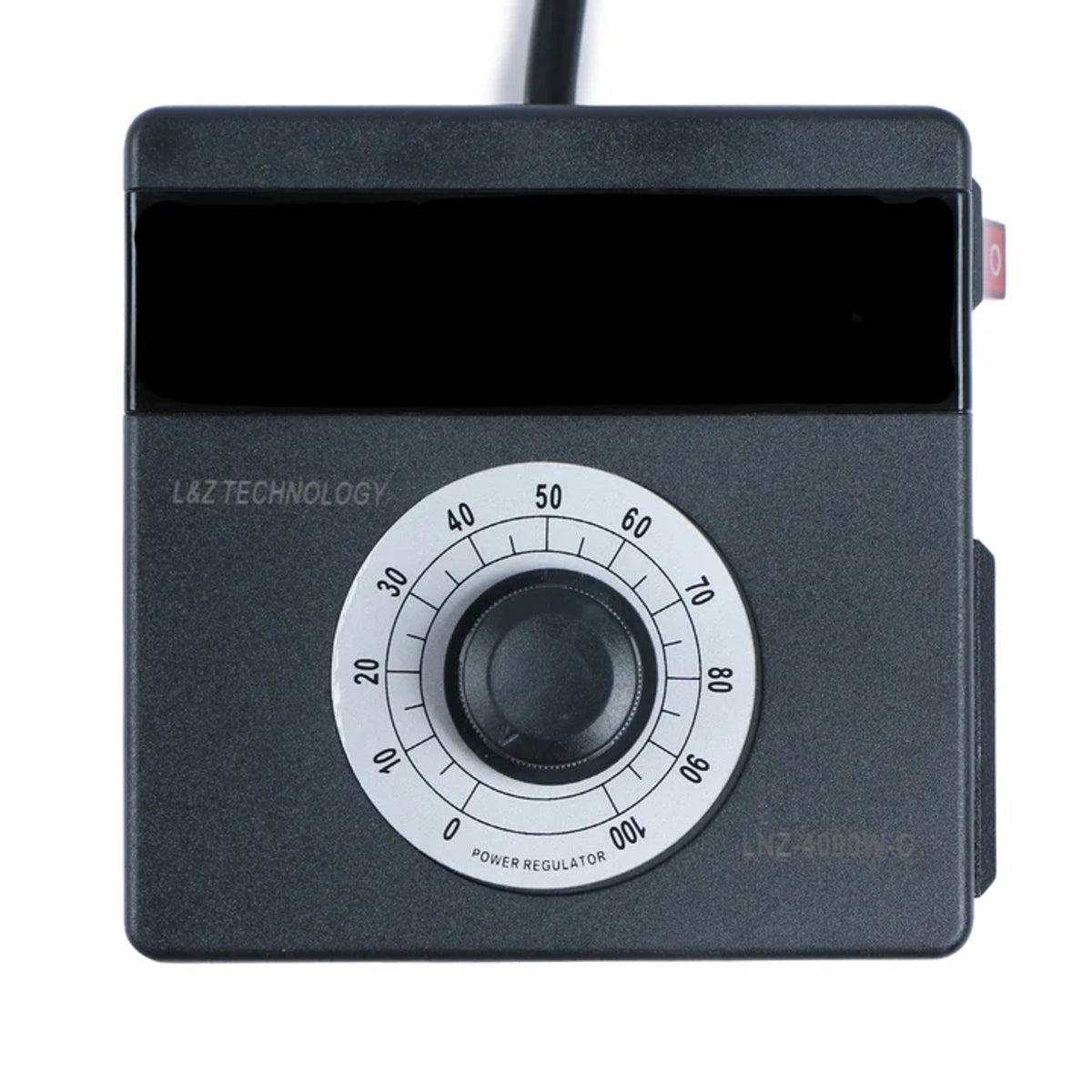 The temperature controller plugs in between the electrical outlet and the branding tool and allows you to use the dial to decrease the heat of the branding tool.