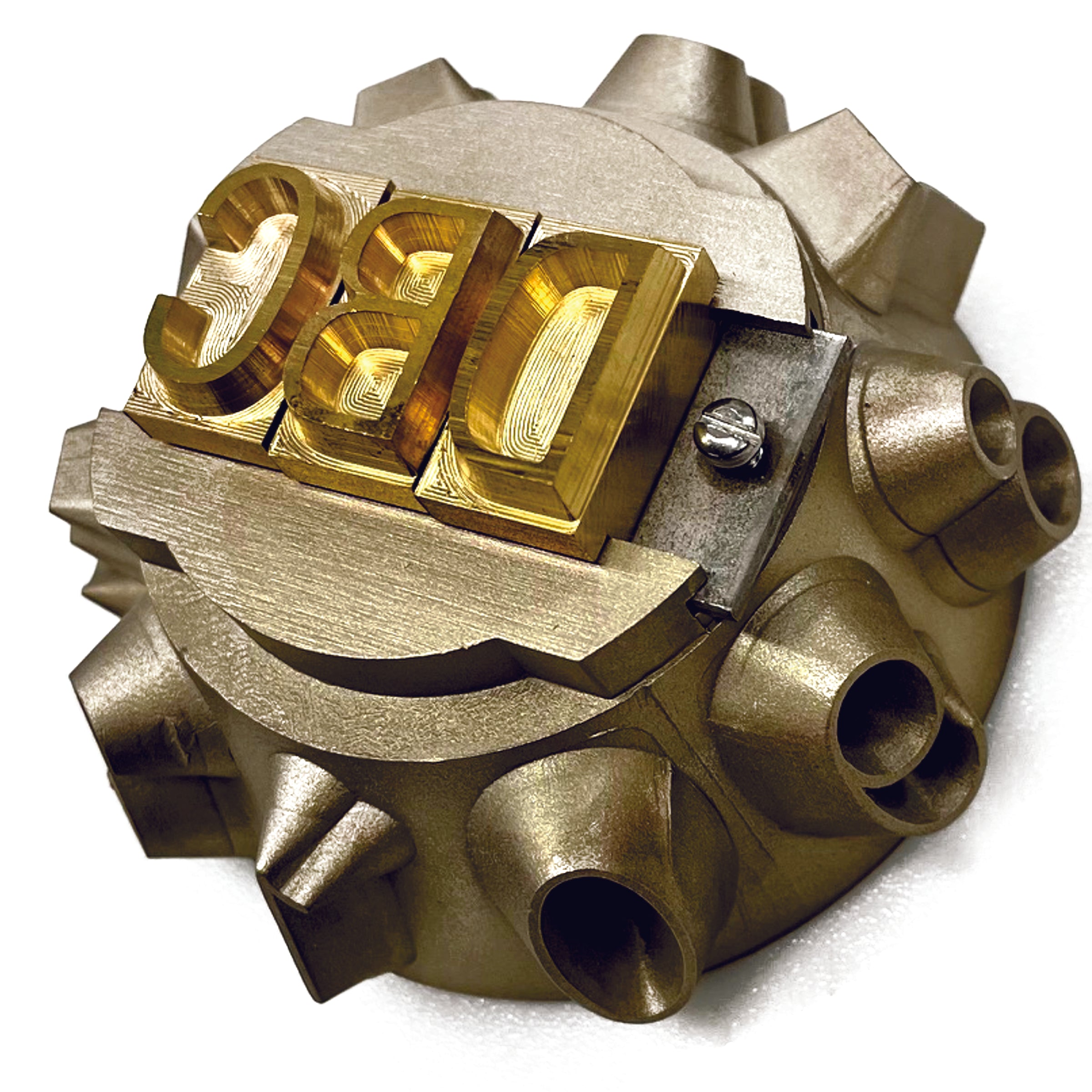 Optional: Custom engraved stamp inserts with your logo, letters or numbers can be provided to fit in the stamp slot. Call us for pricing 258-583-5353.